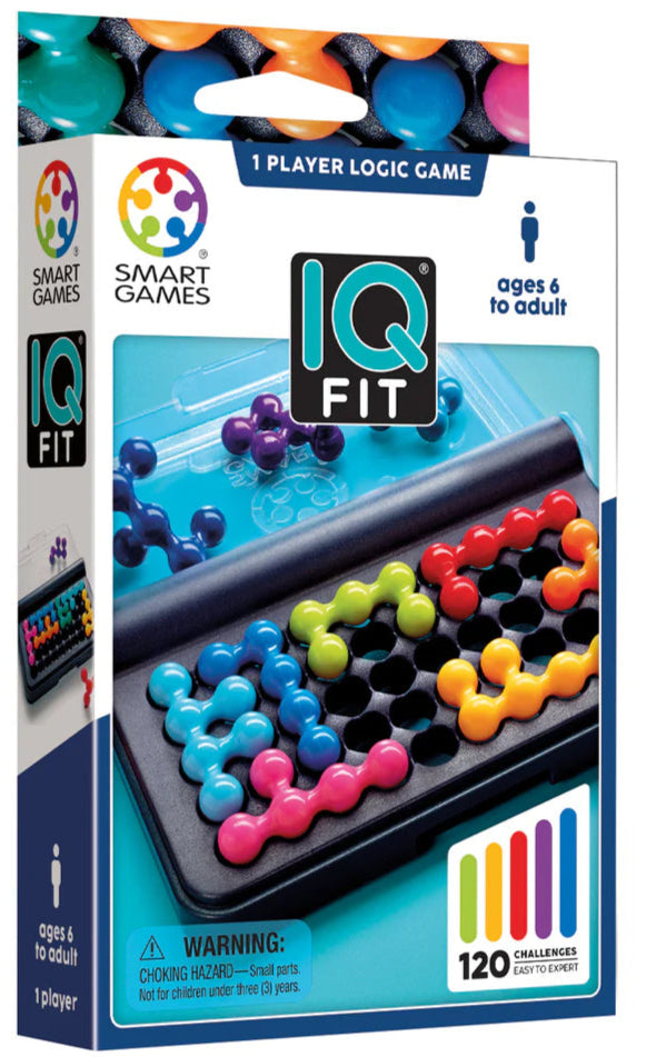 SmartGames IQ Fit offers endless hours of cognitive-skill building fun...on the go! Can you fit the 3D pieces into place on the gameboard? You might need to change the angles to make it work! IQ Fit includes 120 challenges - from easy to expert - that test your planning and visual perception skills. Following the included challenge booklet will ease you into the game and help you become an expert! IQ Fit is pocket sized and the game board includes a lid - making it great for travel!