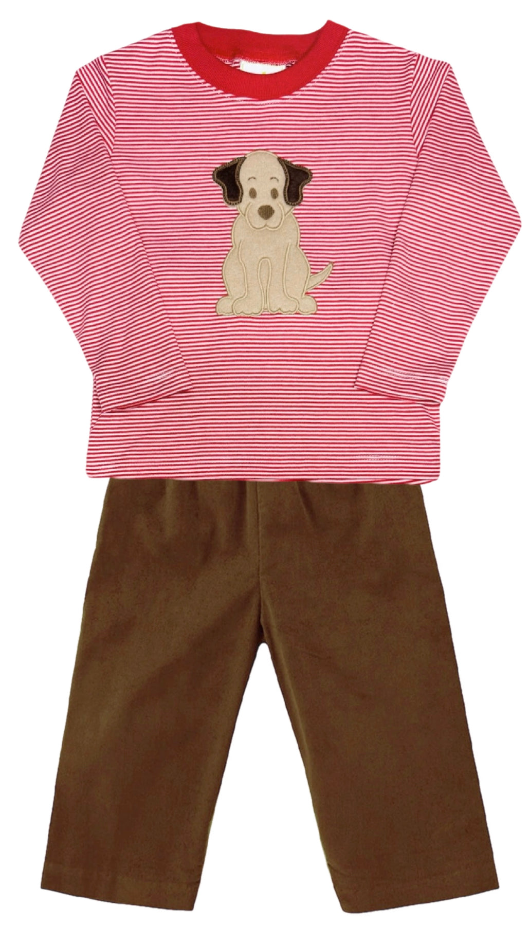 Red Bitty Stripe Labrador Harrys Play Tee & Labrador Leo Pants Cinnamon Corduroy