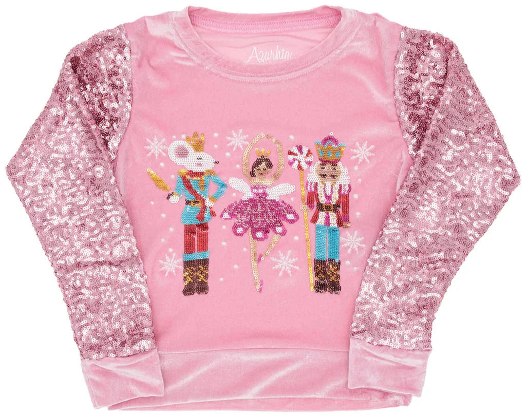 Celebrate the festive season in style with this Pink Velvet Sweatshirt, featuring dazzling sequin sleeves that add a touch of elegance to your holiday wardrobe.