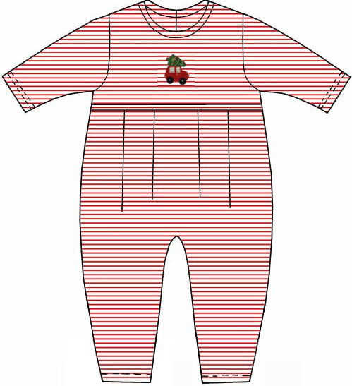Red Stripe Car with Tree Crochet Boy Romper