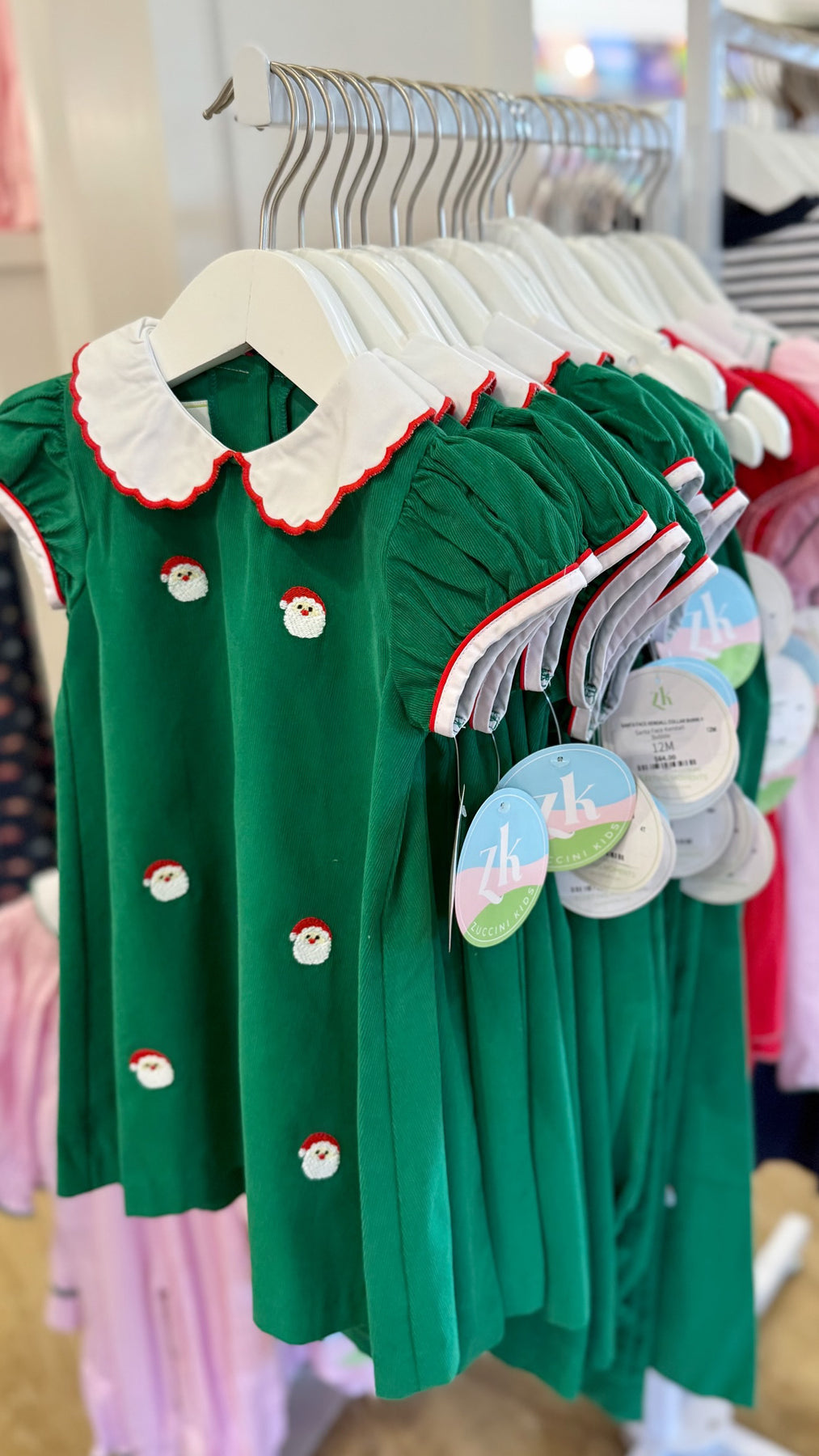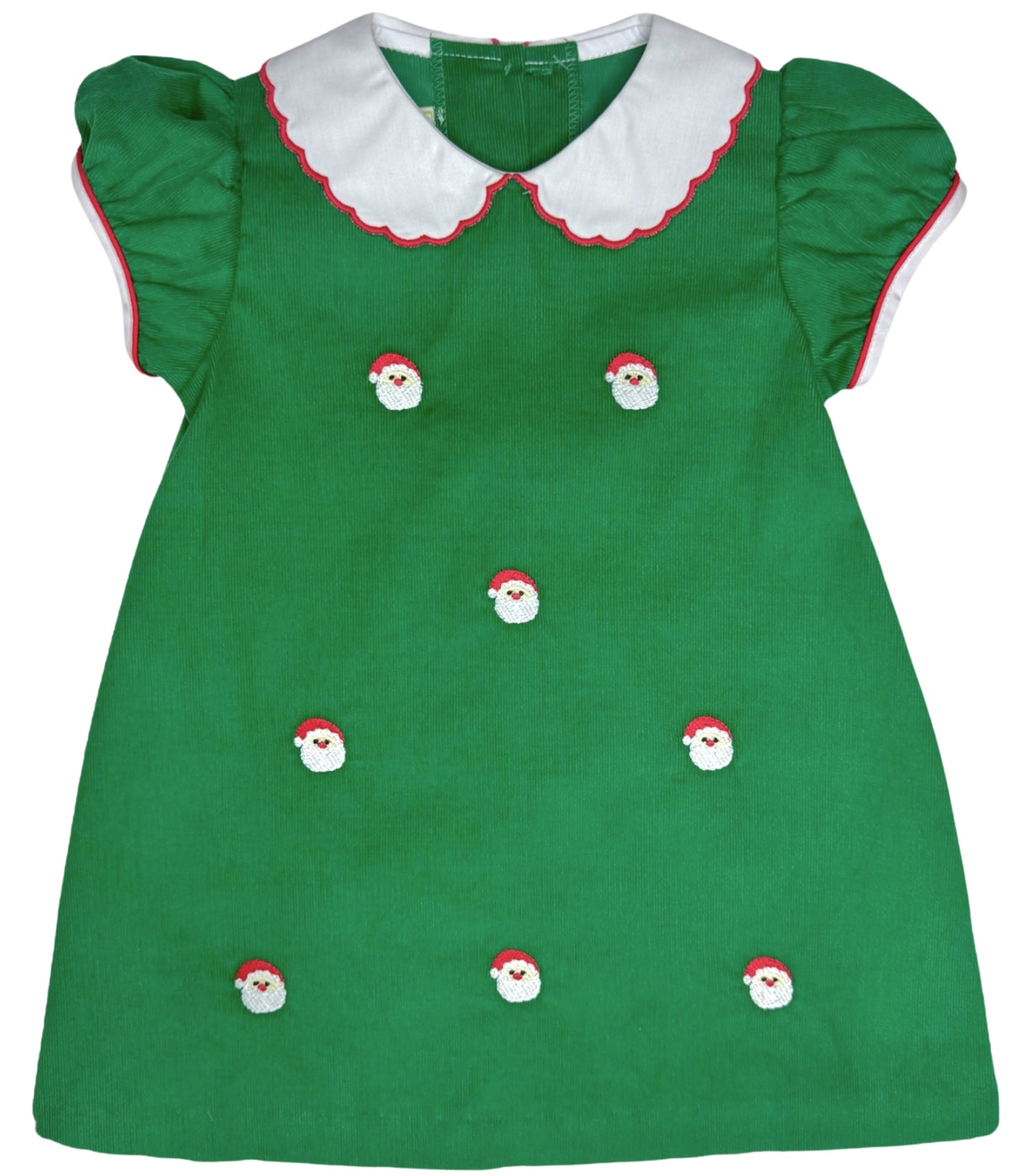 Santa Face Kendall Collar Dress, Christmas Green Cord