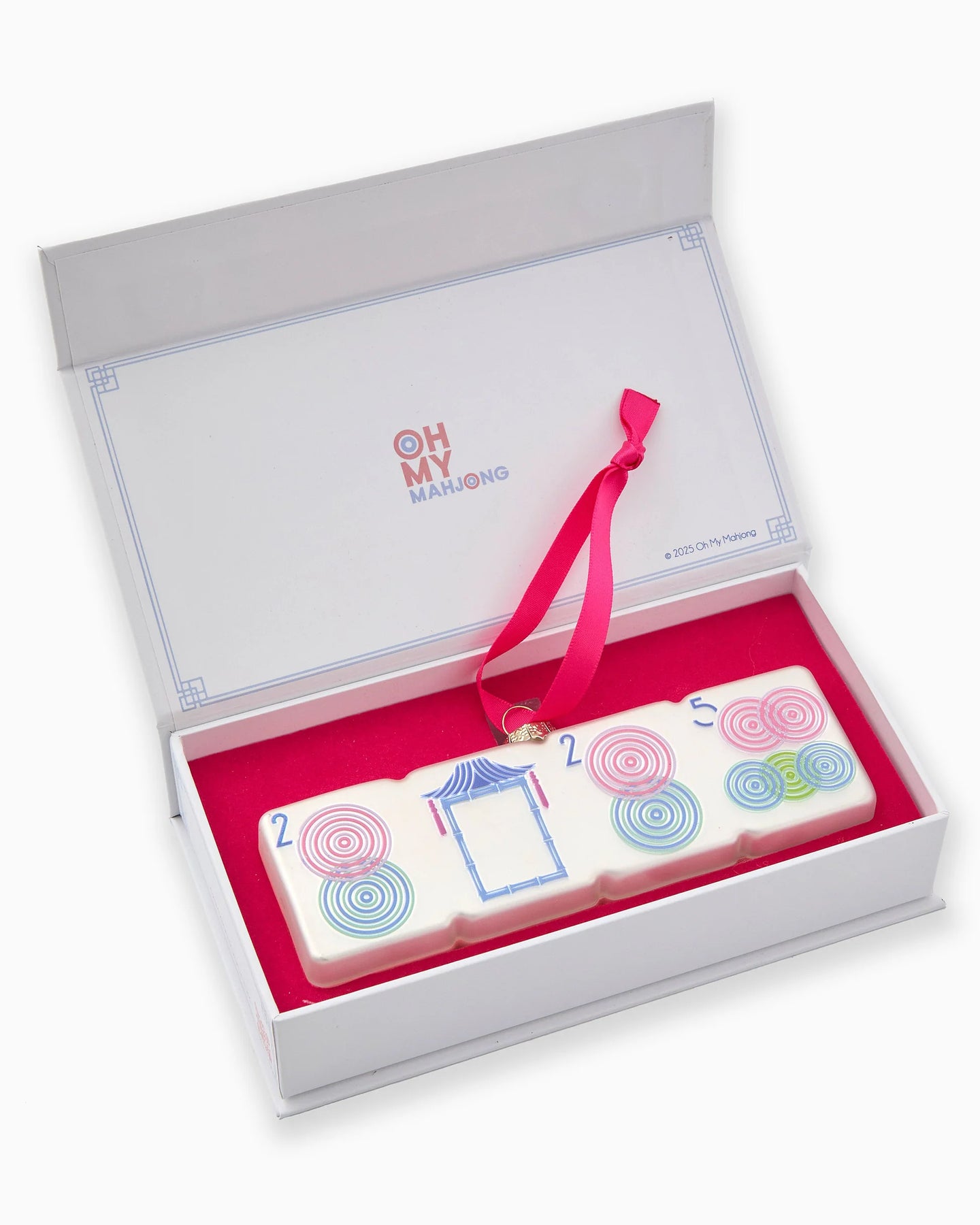 Inspired by the 2025 hand on the National Mah Jongg League Card and our elegant Luminaire Tiles, the Luminaire Ornament is a stunning tribute to the beauty of mahjong. Featuring the same sleek design and radiant details that define the Luminaire set, this ornament captures the spirit of the game in a way that shines. Whether displayed on your tree, gifted to a fellow mahjong enthusiast, or kept as a treasured keepsake, the Luminaire Ornament is a timeless addition to any collection.