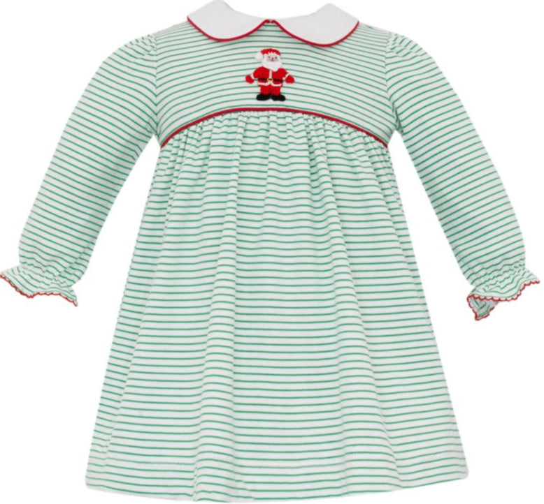 SANTA GIRL´S - Green stripe knit girl´s dress L/S