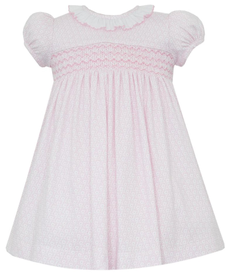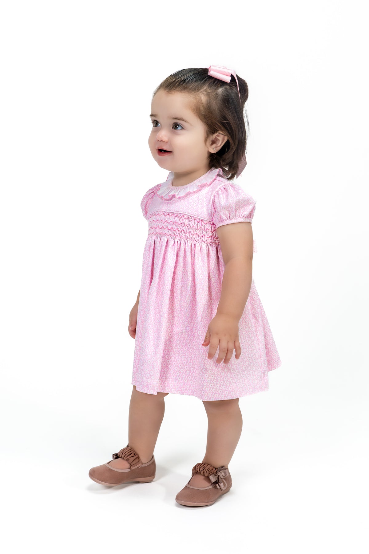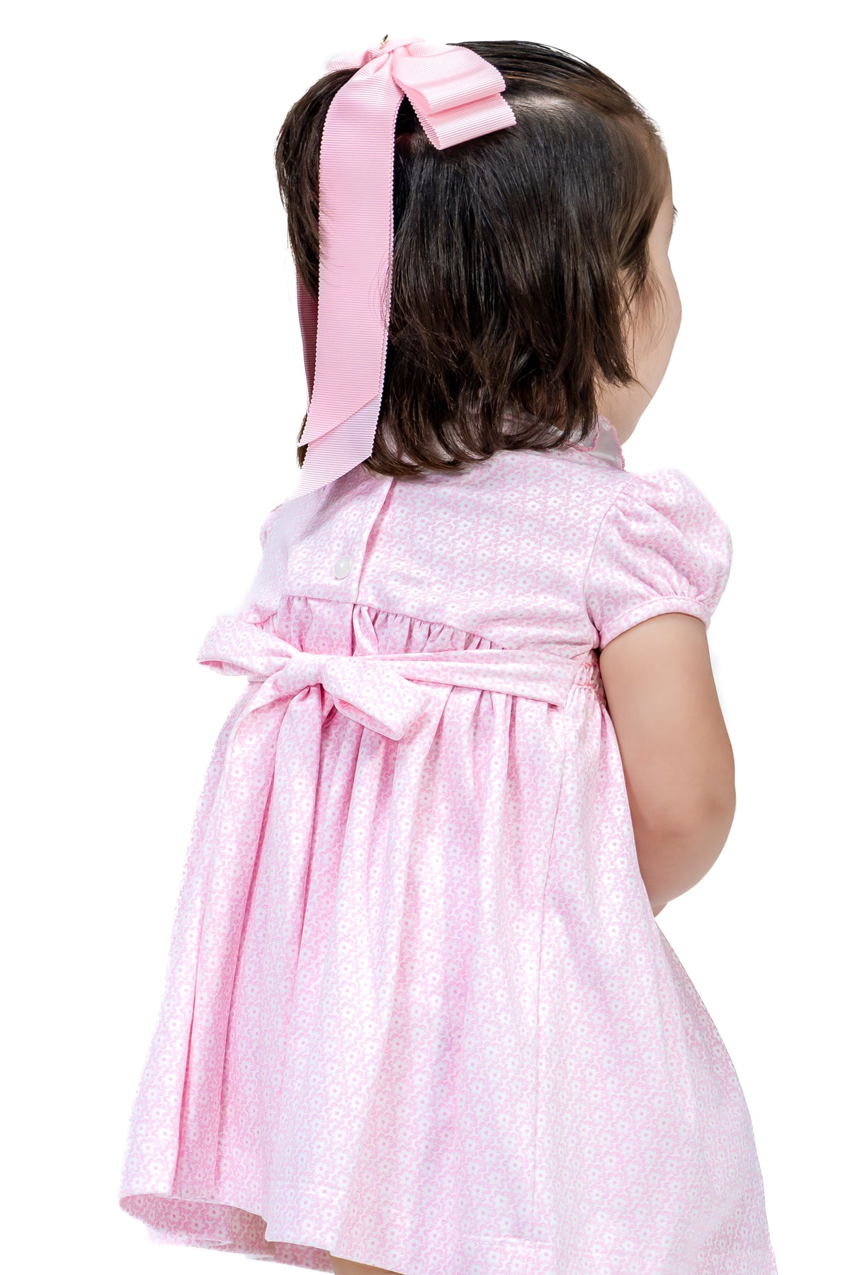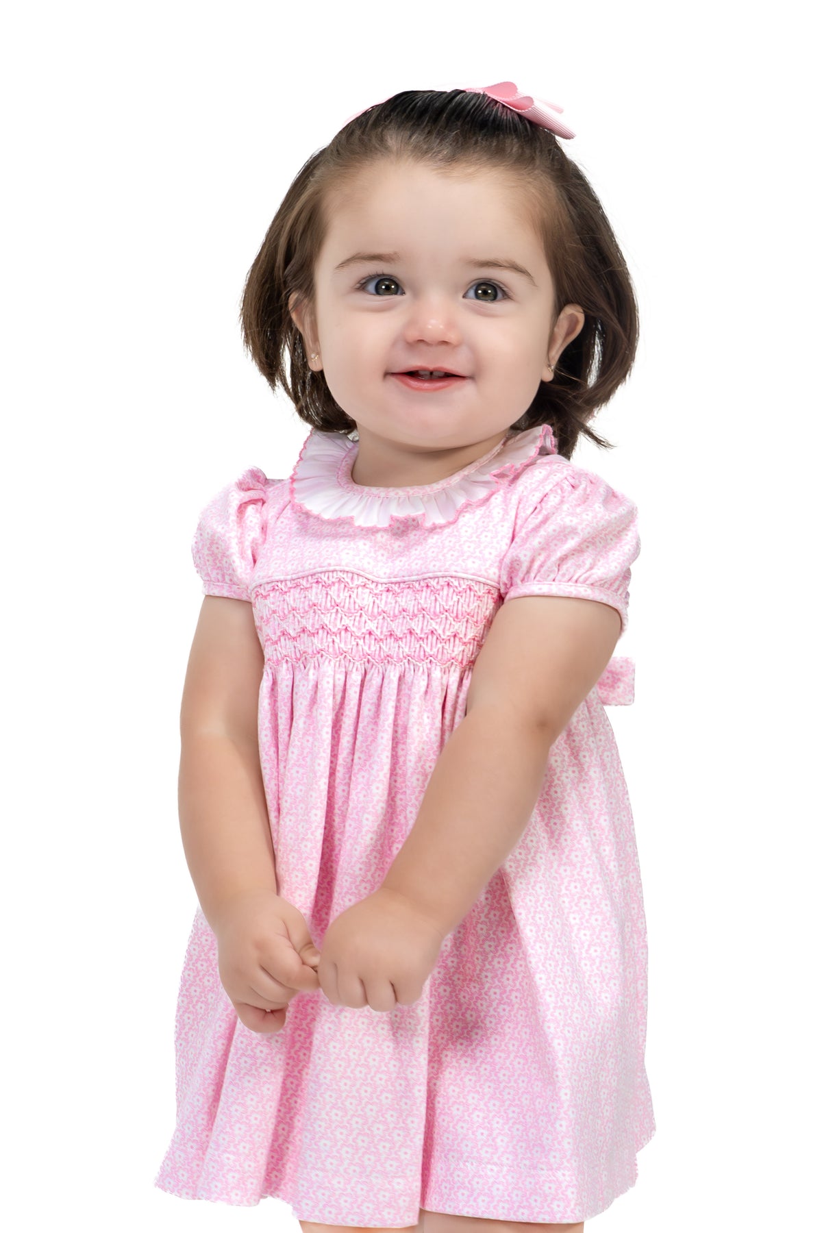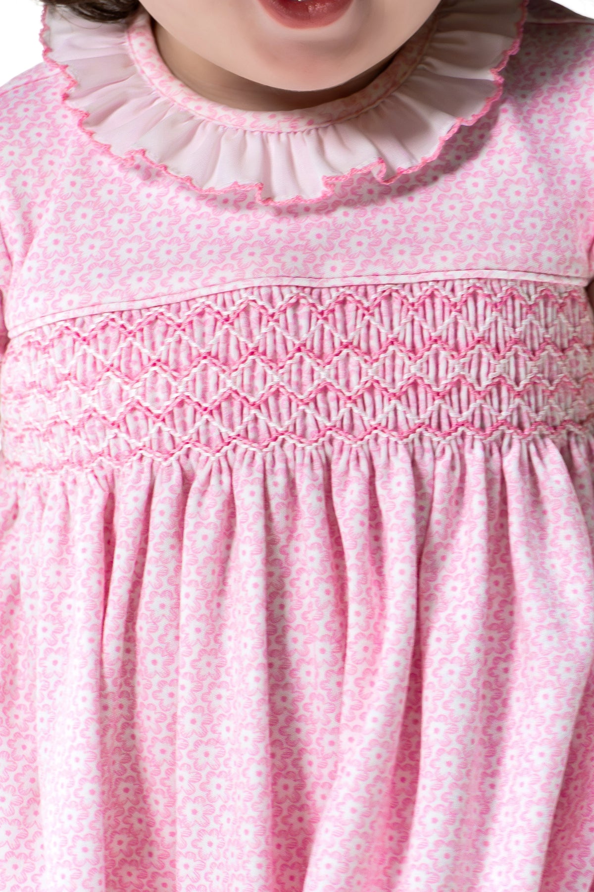 IVANNA - Pink flower knit print dress w/ white ruffle collar