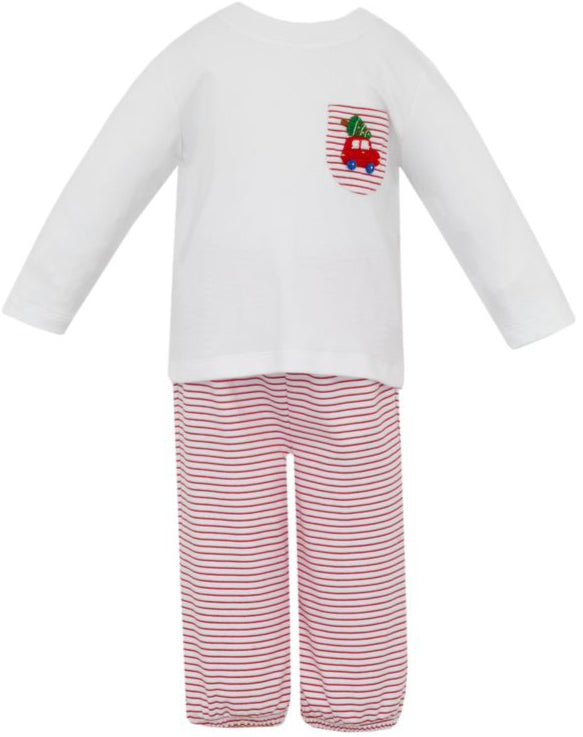 CAR WITH TREE - Red stripe knit boy´s pant set w/ white knit T-shirt L/S