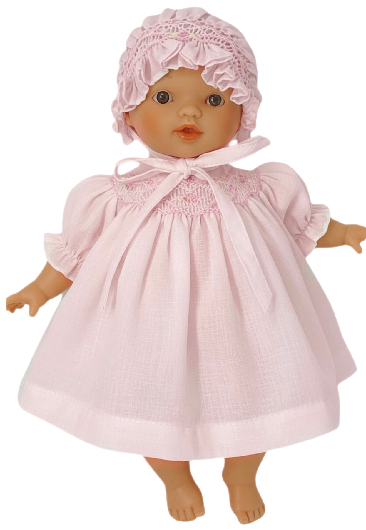 10'' Aubrey Brown Eyed Doll - Pink Smocked Dress with Bonnet