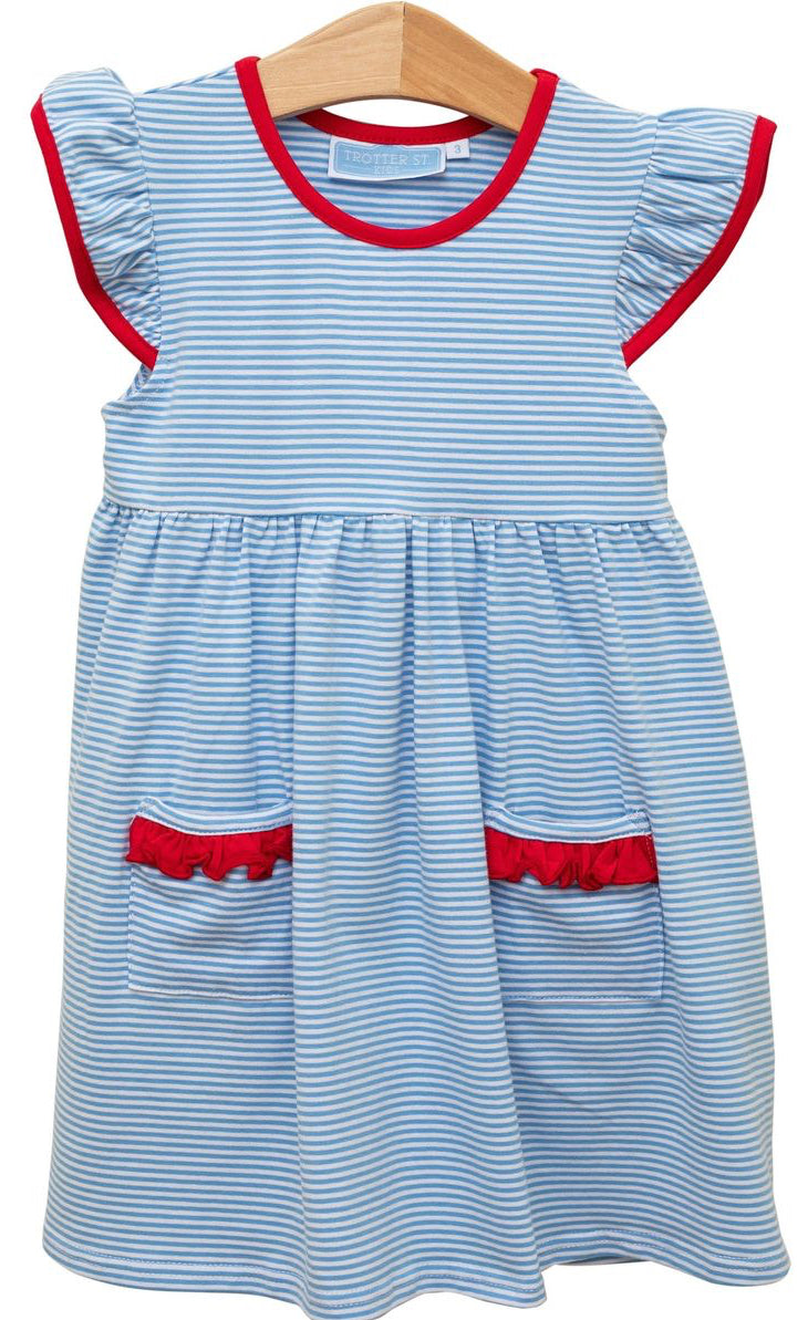 Lucy Dress - Cornflower Stripe/Red