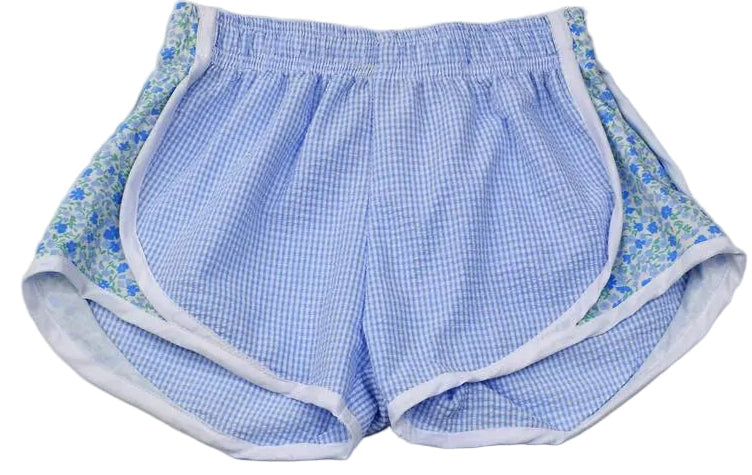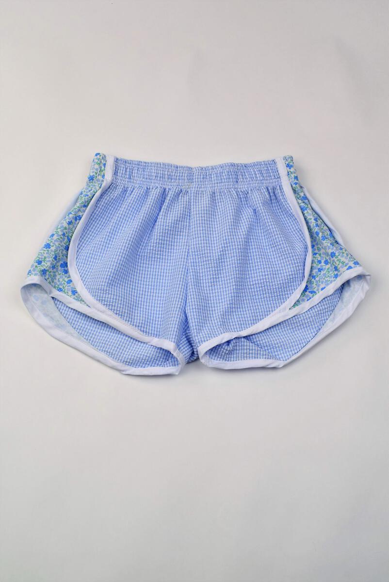 *PRE-ORDER* Athleisure Shorts - Blue Check/Floral Side