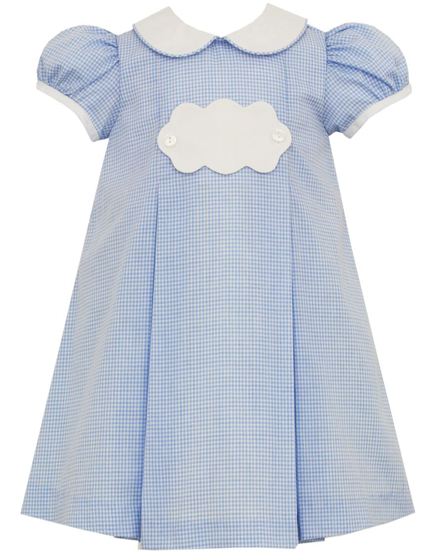 Lt.BLUE GINGHAM - Lt.blue gingham float dress w/scalloped white tab