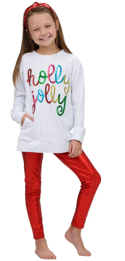 Off White Velvet Sequin Holly Jolly Sweatshirt