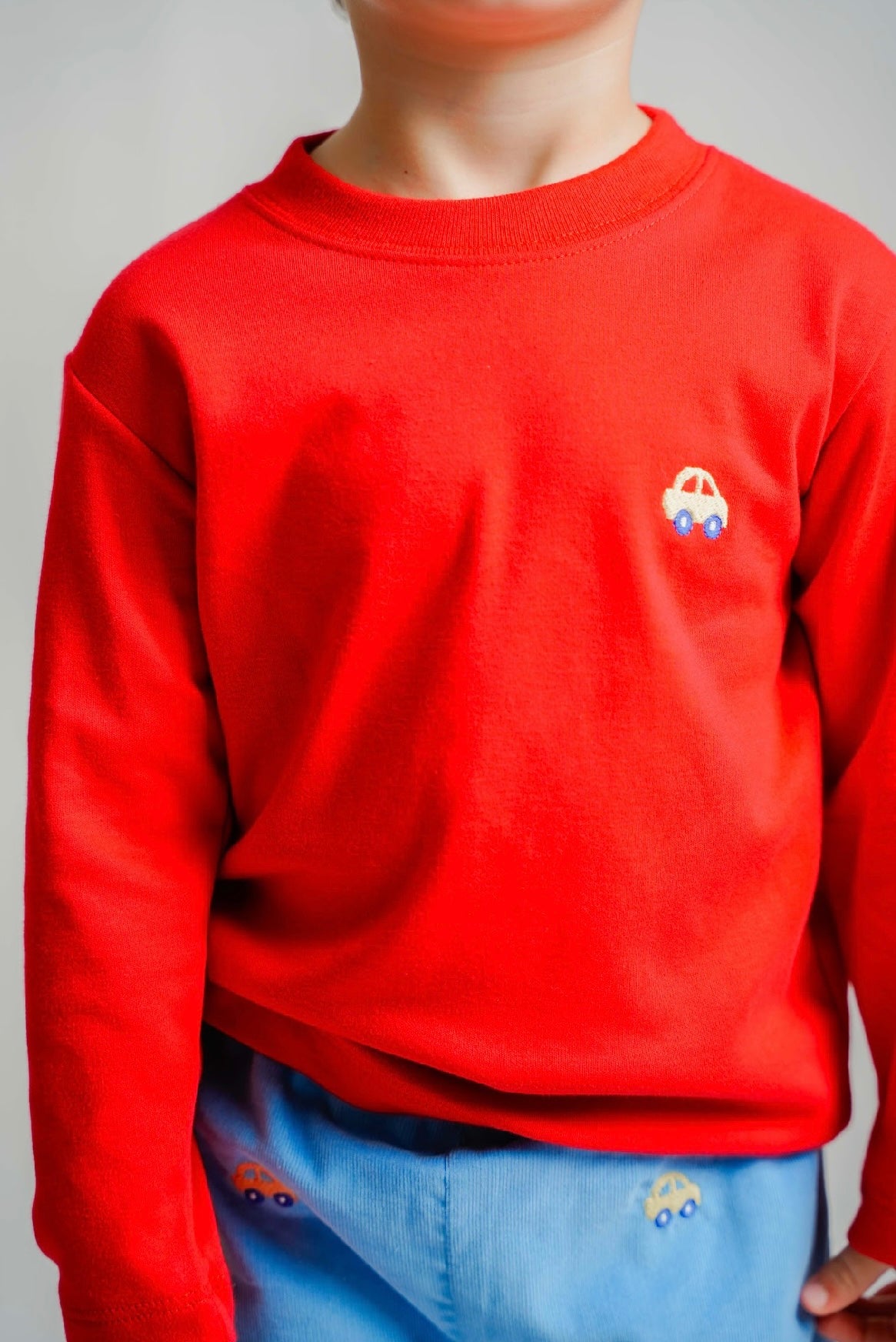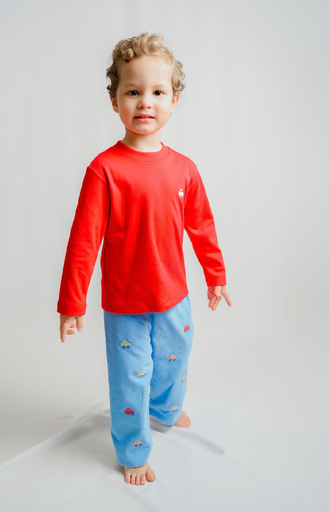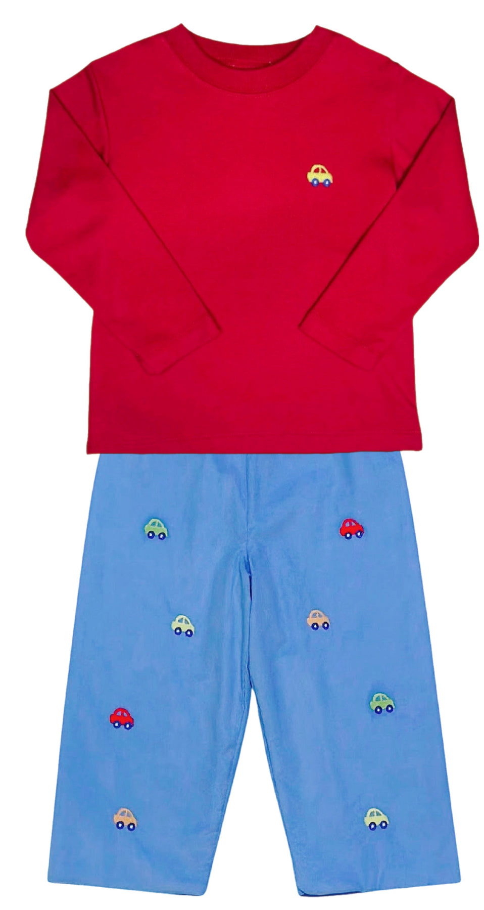 Cars Harry Play Tee Red Knit & Cars Leo Pants, Periwinkle Cord