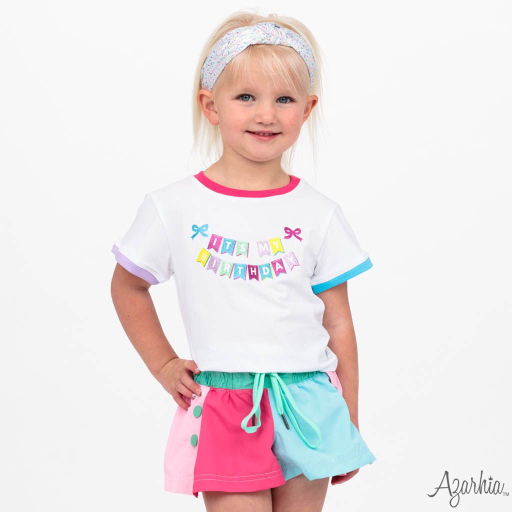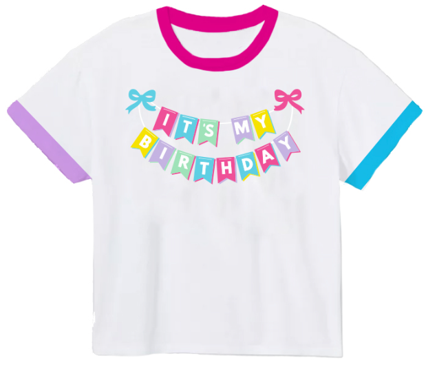 Celebrate in style with the "It's My BIRTHDAY Glitter on White Ringer Boxy" tee.