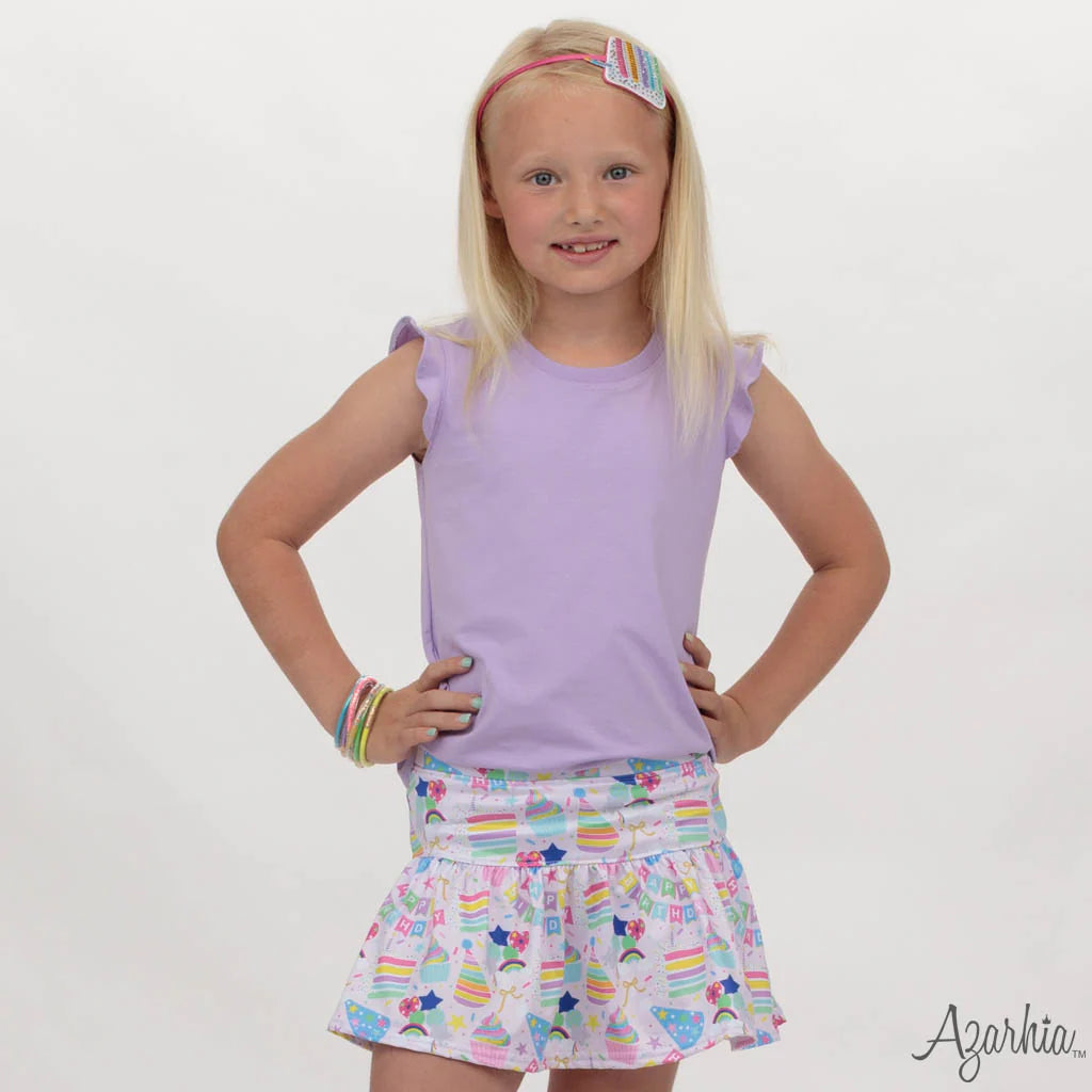 Attention all fashionistas: Behold the birthday must-have, the Birthday Collage Gathered Skort! Perfect for any celebration, this skort combines the best of both worlds - the effortless comfort of shorts with the stylish sophistication of a skirt. Trust us, you'll want to print this skort into your wardrobe ASAP!
