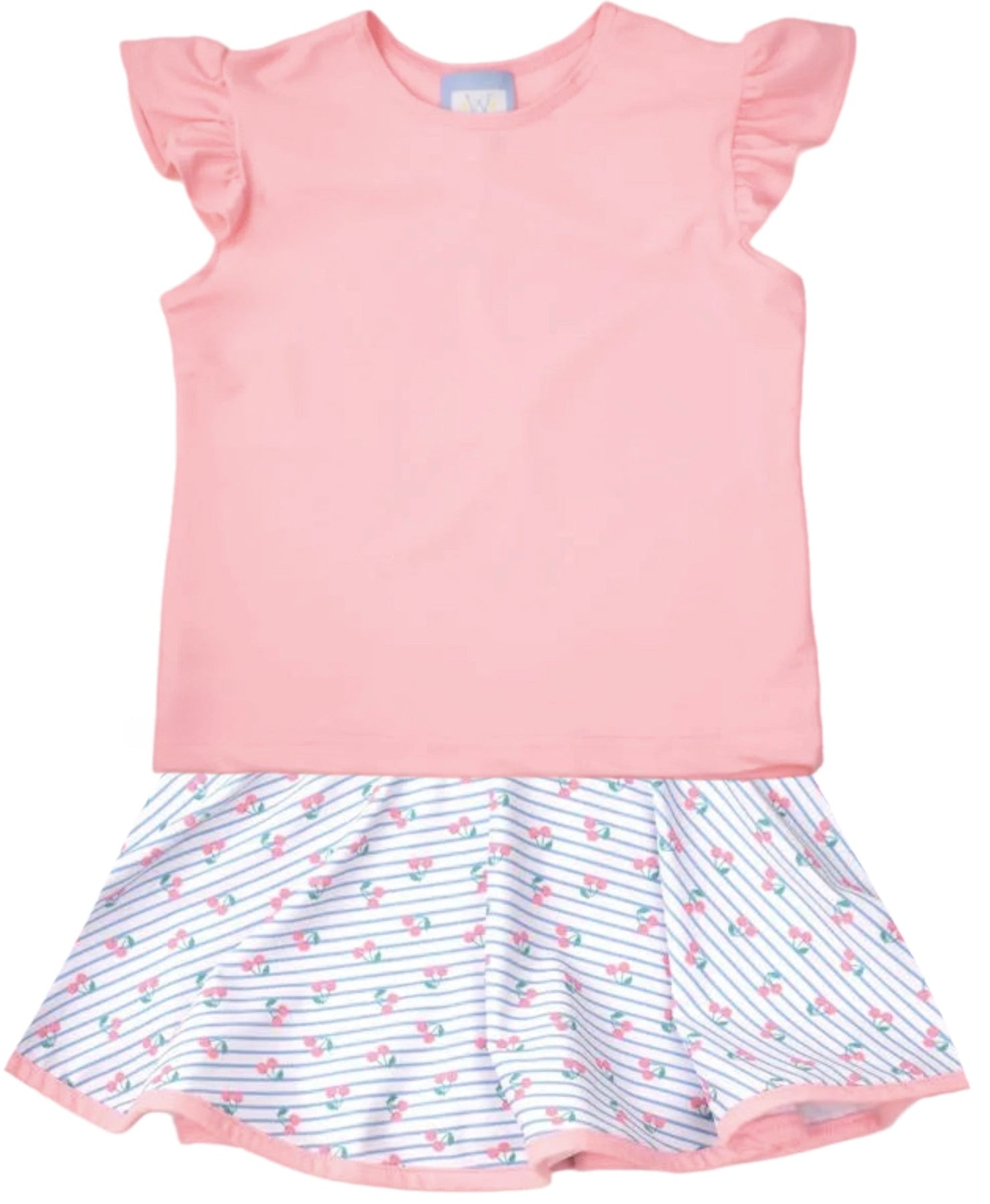 Pink Angel Sleeve Top, Cherries Floral Skort