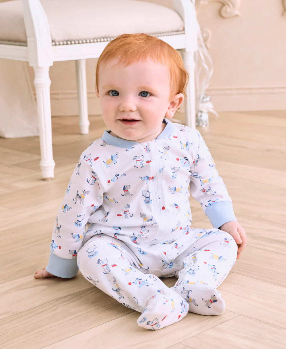 Your baby will be ready for a day of fun in our puppy patch print zippered footie. Made from the softest Pima cotton for ultimate comfort.
