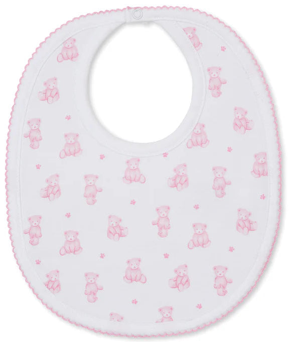 Our pink teddy bears printed bib is perfect for catching baby girl's mealtime messes. Made from 100% Pima cotton for softness and comfort.