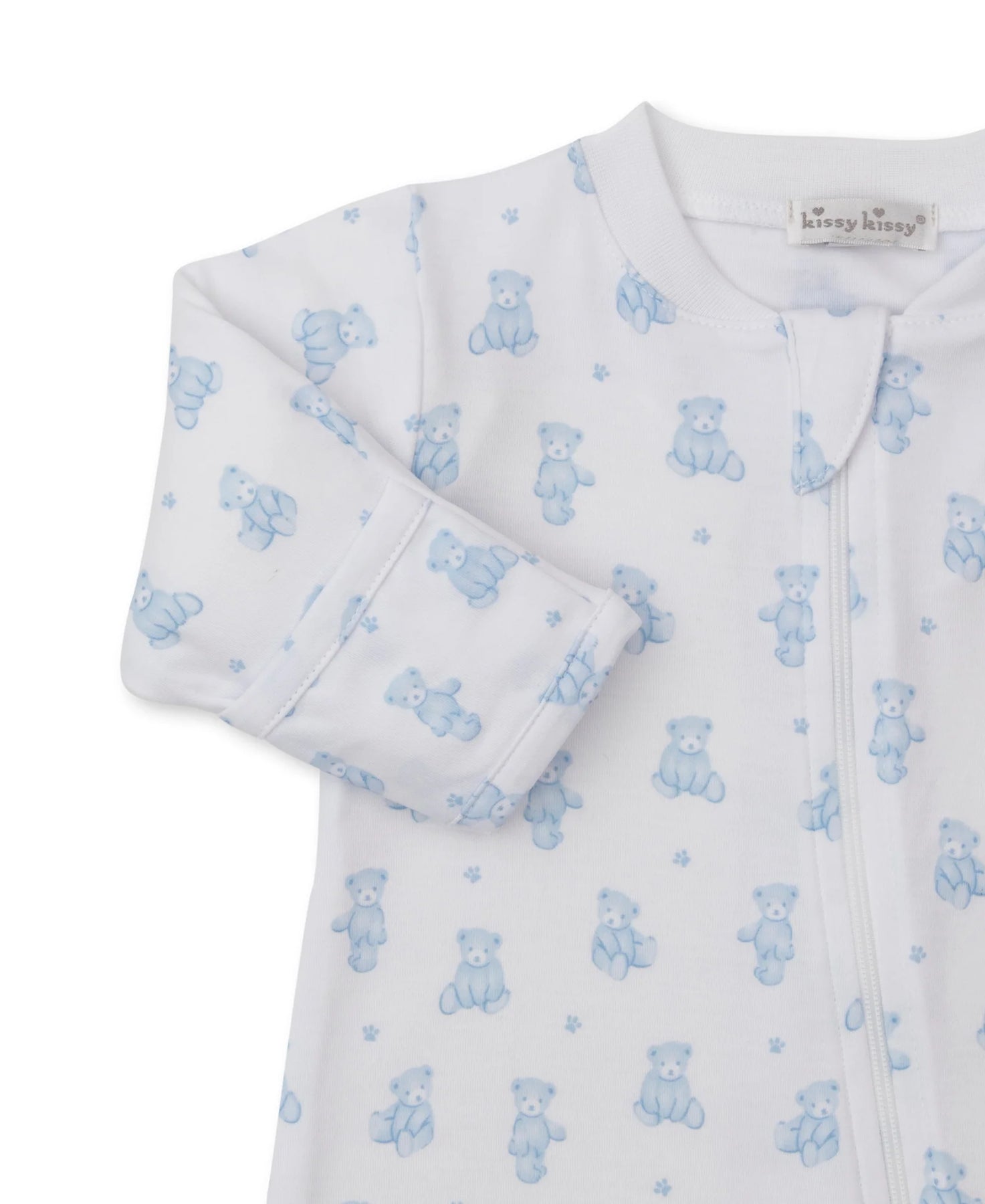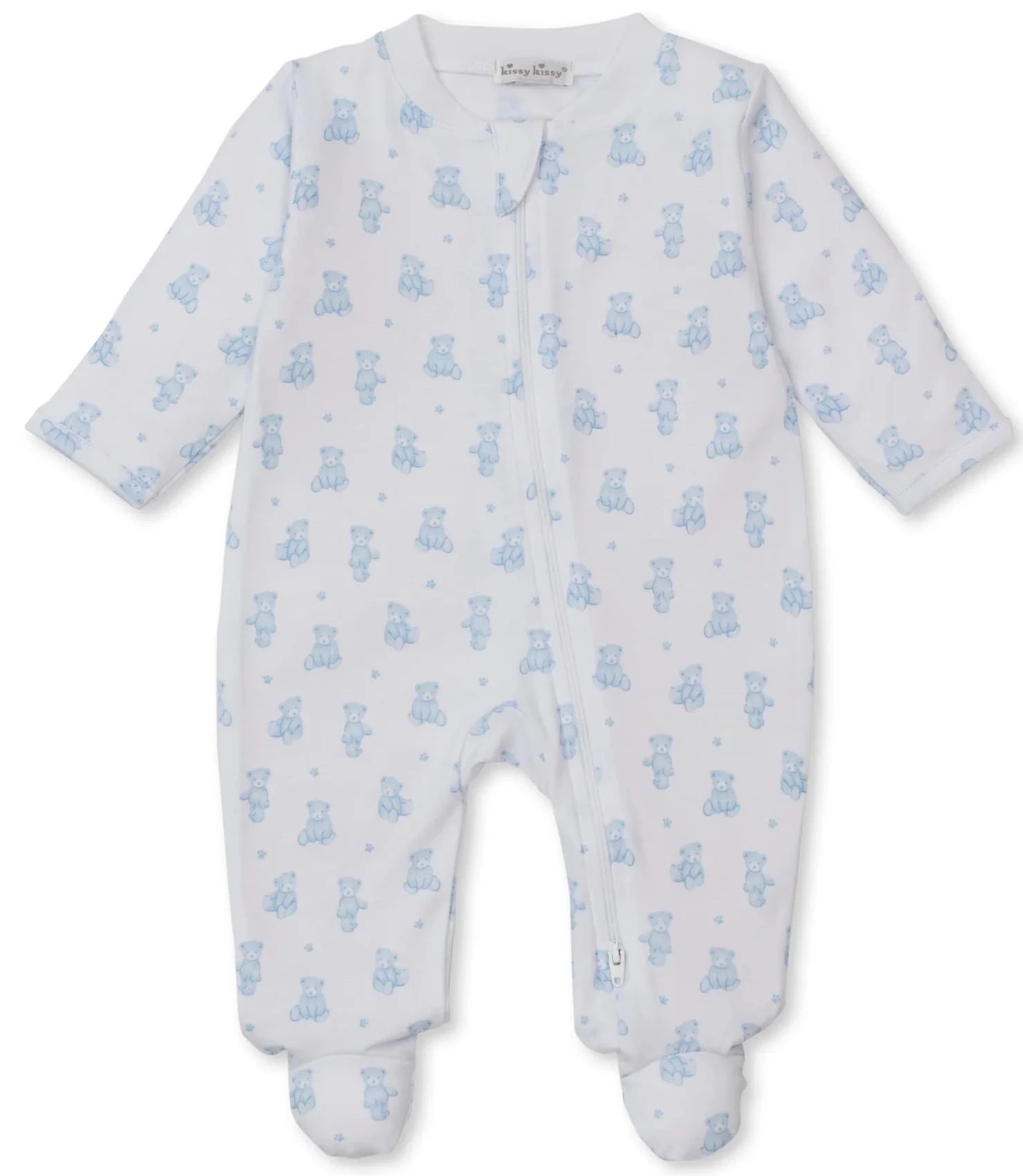Playfully patterned with our teddy bears print, our cozy, zippered footie for your precious baby is made from the softest Pima cotton for ultimate comfort.