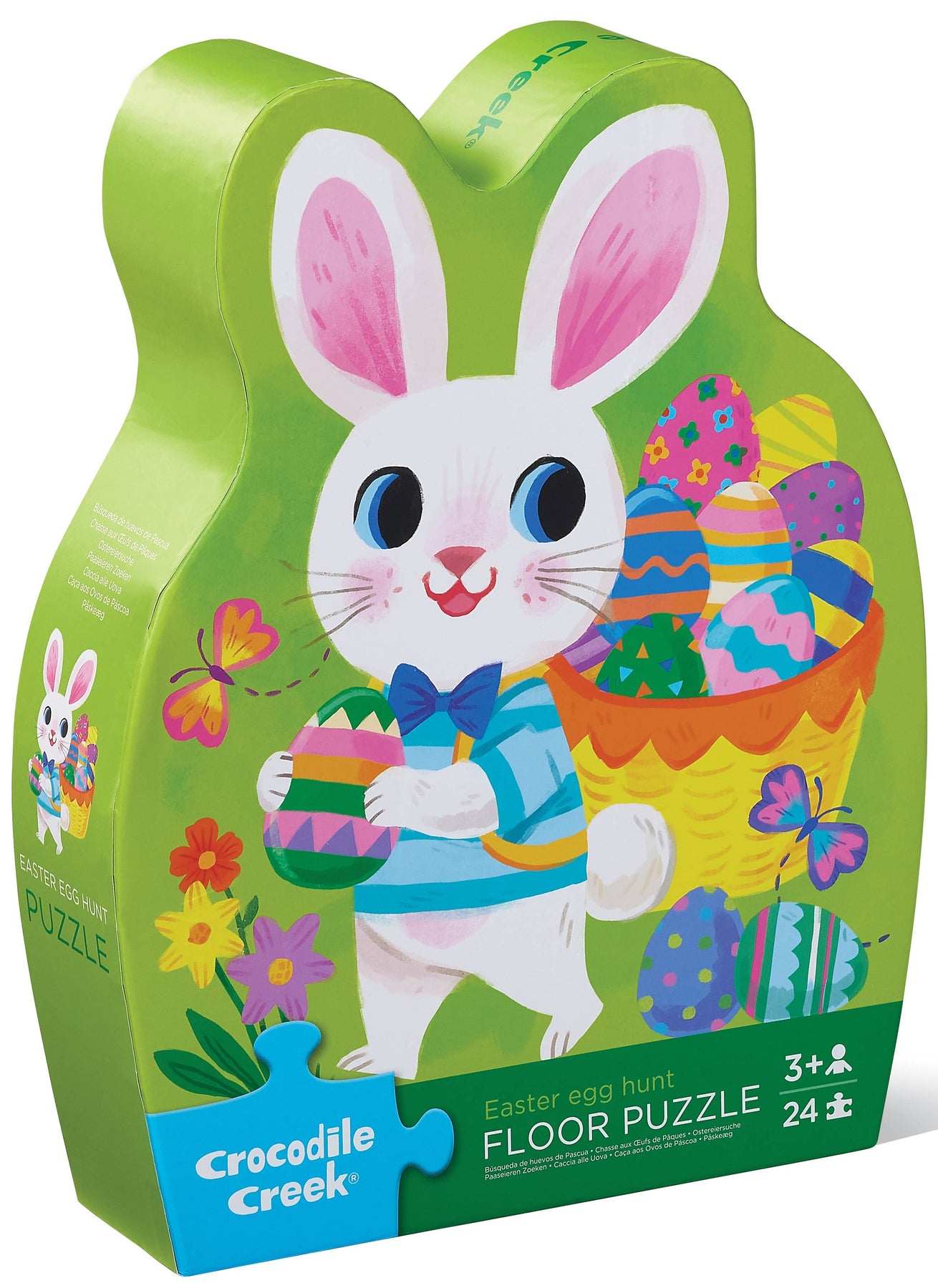 The Easter Bunny 24 piece jigsaw puzzle will delight any shark enthusiast. Featuring bold colors and a whimsically illustrated puzzle that encourages hand-eye coordination and problem solving. Great for interaction between a parent and child that can be used over and over. Sturdy box makes for easy storage and small size is perfect for travel. * 12 thick puzzle pieces that fit together well for children 2 and older * Encourages hand-eye coordination, fine motor skills and problem solving * Puzzle pieces are made of strong, high-quality blue board that will not tear or break. * Printed with soy-based inks Beautifully illustrated artwork on both puzzle and shaped storage box