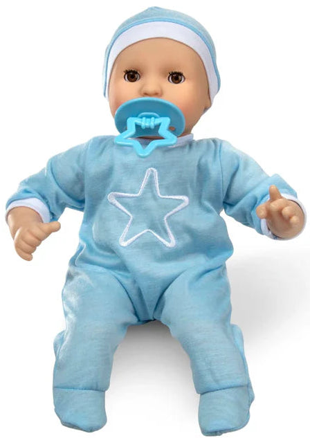 Welcome the newest addition to the Mine to Love family, a bouncing baby boy! Jordan has a handsome removable romper and cap, brown eyes that open and close, and he can suck his thumb or the included pacifier. Just right for kids 18 months and older, Jordan's 12-inch soft, huggable body is lightly scented, with wipe-clean, light skin-tone face and limbs. Mine to Love dolls and accessories encourage empathy and help kids express themselves as they explore grown-up roles and responsibilities. A child's confidence and self-esteem blossom and grow with each nurturing moment of imaginative play. Jordan is just waiting for a child to call him "Mine to Love"!