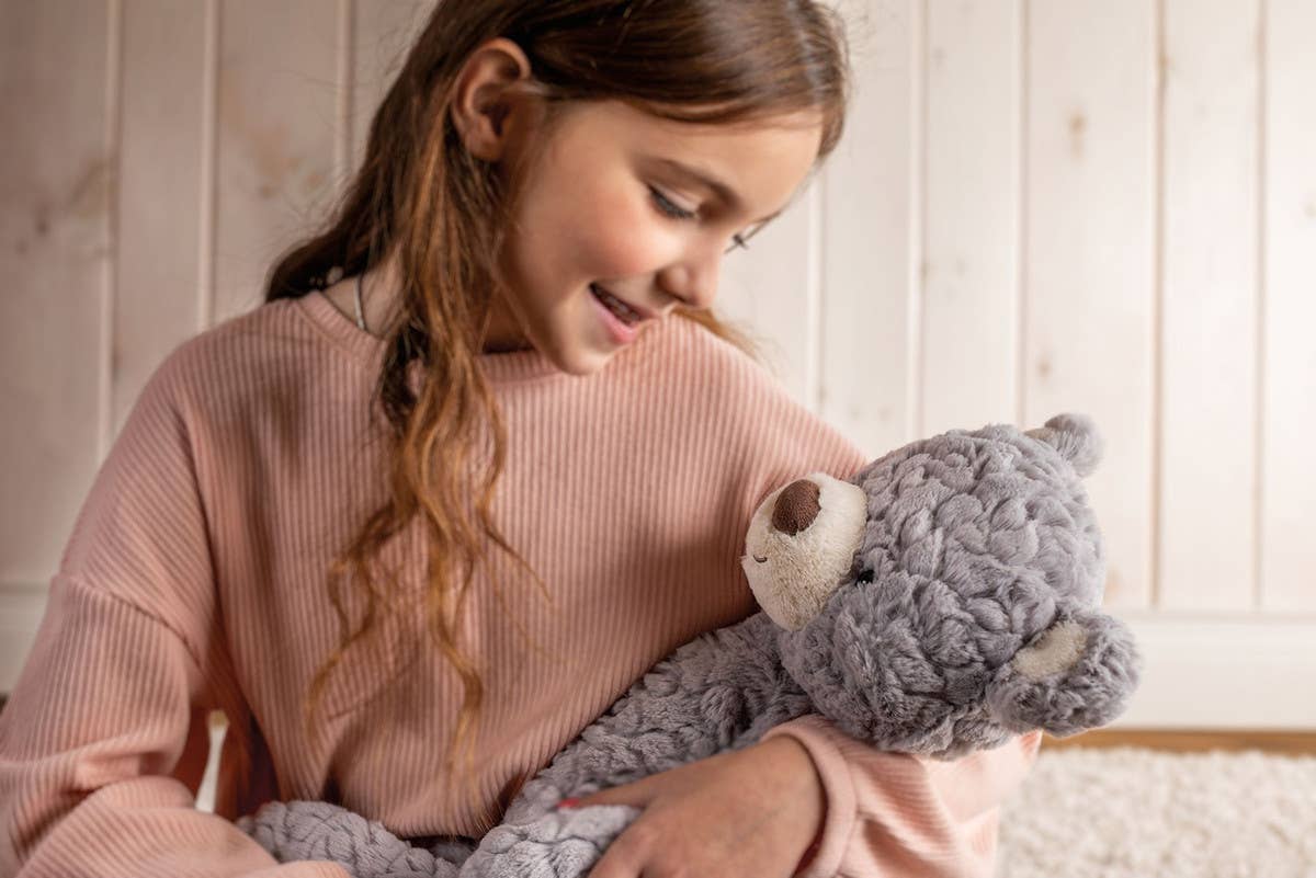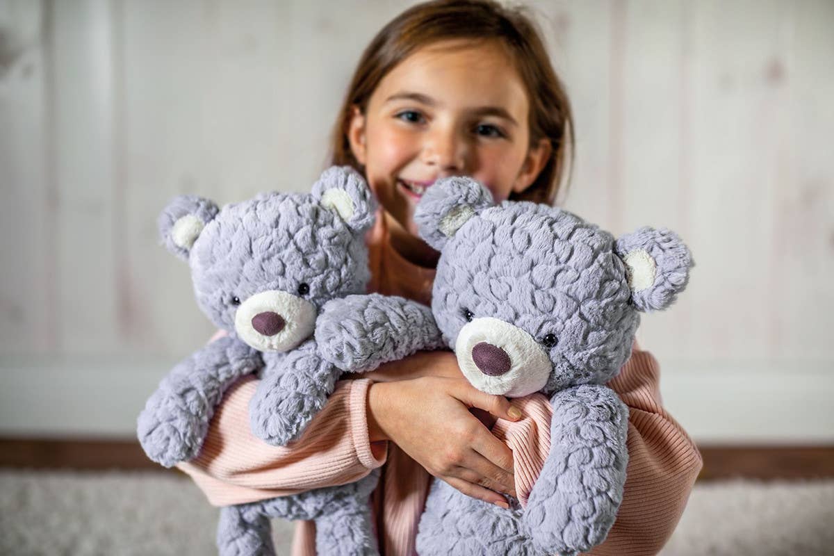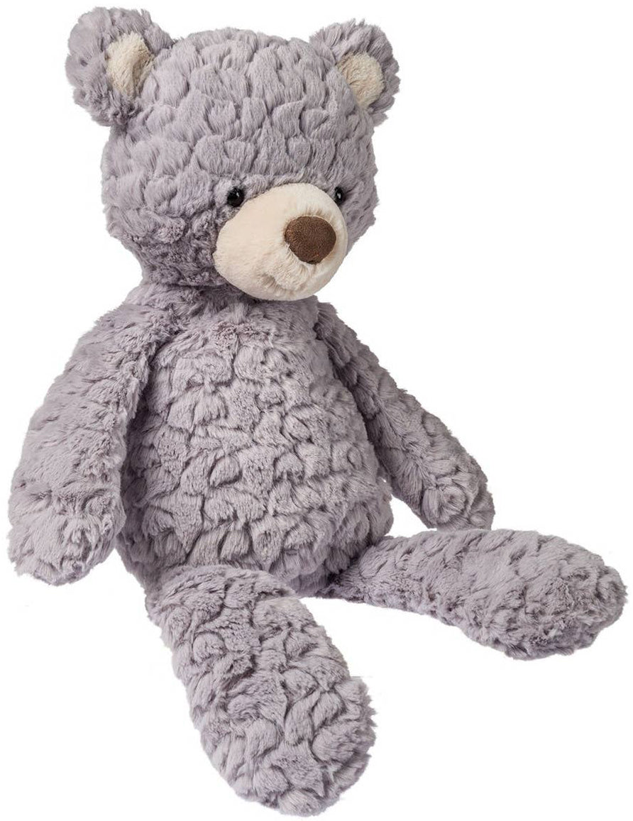 Putty Bear features super soft, etched fabric and measures 11-inches tall from the top of the head to the bottom of the feet. Sweet fabric face and plastic eyes. With lovely, warm colors and the sweetest smiles, Putty toys make oh-so-soft companions. A dab of Putty is enough to brighten every day.