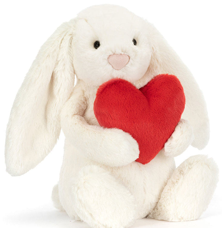 A classic gift to share love and joy with iconic Bashful Bunny. This cloud-soft bunny has cream fur, flopsy ears and a pink suedette nose. Holding a sumptuous cranberry heart, this Bashful Bunny gives incredible hugs, from Valentine's Day to a special anniversary.