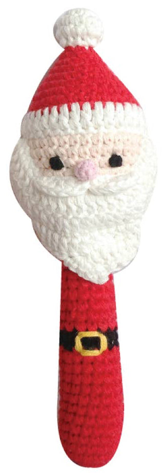 He sprung to his sleigh, to his team gave a rattle, and away they all flew, leaving us dazzled...something like that :). A perfect crochet Santa stick rattle for the magic of the holidays. Zubels crochet Santa baby rattle features a crochet technique that creates a bumpy texture that is perfect for little hands to grasp and hold while also helping to develop babies' sense of touch and feel. This crochet Santa baby rattle is handmade using all natural fibers and eco-friendly dyes making a rattle that is safe for infants and newborns. Our crochet Santa baby rattle makes a great Christmas and Holiday gift or stocking stuffer and is easy to care for - just machine wash and lay flat to dry! Can also also make a great Christmas tree ornament too! 6" Rattle *Made with 100% cotton yarns and eco-friendly dyes. *Tested 100% safe by U.S. Product Safety Commission Standards. *All details are sewn on instead of using small pieces. *A perfect hand crochet rattle for babies and toddlers.
