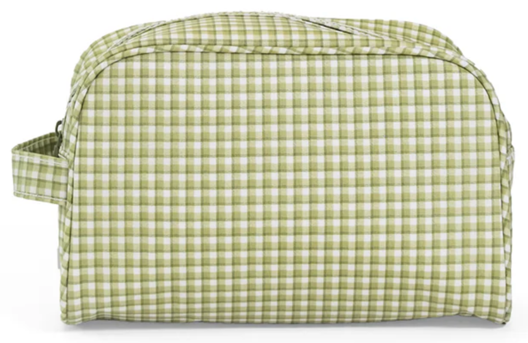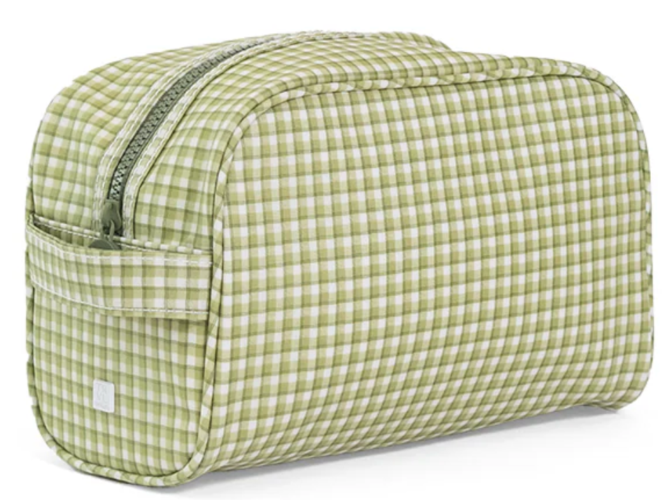 This soft yet sturdy toiletry bag is the perfect Stowaway at home or on the go! It's roomy size can store your grooming supplies, make-up, hair care, plus holds a supply of diapers and wipes. Styled with a chunky top zip, wide gusset and side handle plus a roomy interior and wall pocket - the exterior is coated and interior is wipeable and this bag is machine washable!