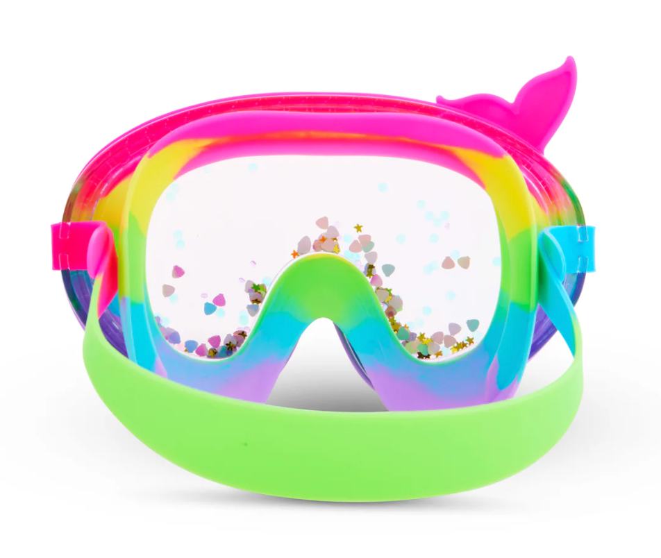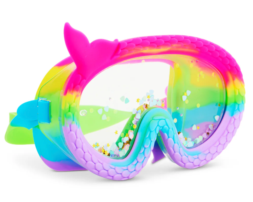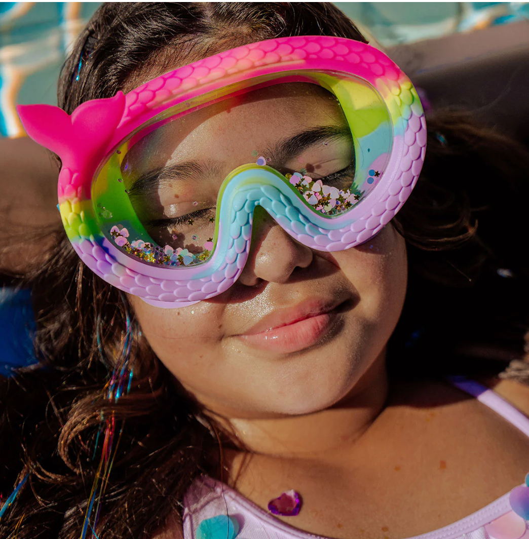 The Splash n’ Shimmer Mermaid Cove Kids’ Swim Mask, designed for kids ages 6 and up, brings an enchanting underwater world to life with floating rainbow glitter inside our signature double-lens mask.